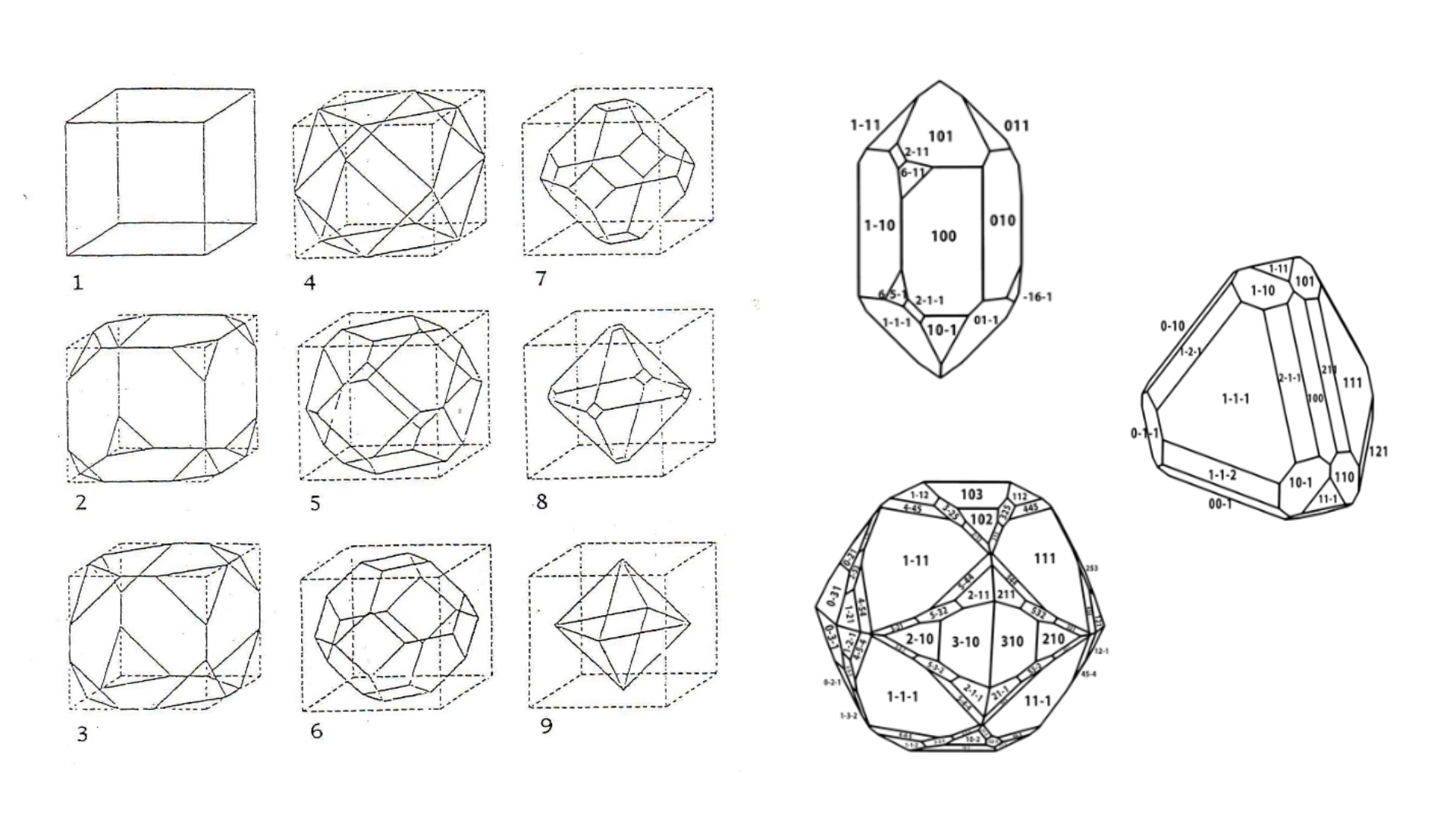 Chaque espèce cristalline en fonction de sa structure et de sa symétrie complexe proposera des formes différentes.