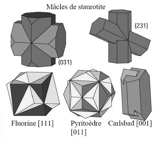 Ces macles suivent la structure de la maille la plus petite ainsi que ses angles de symétries et ses vitesses de croissance, les briques fondamentales suivent alors des patterns spécifiques donnant lieu à de magnifiques cristaux complexes.
